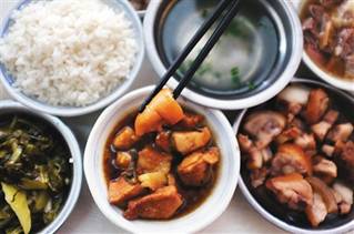猪脚牛腩饭是一个在海口随处可见的美食快餐,通常店铺门面都很小,支起几口热气腾腾的大砂锅,摆上桌椅板凳,就足够开摊。伙计手脚麻利地取一块卤煮好的牛腩肉或猪脚,切成小片码在盘子里,浇上一勺热乎乎特制卤酱,一盘满载着温度和诚意的市井佳肴就这样上桌了,再配上两碟小菜,一碗浇上猪脚汁或牛腩汁的油米饭,就上一碗店家免费送的葱花海螺清汤,美味极了!这就是老海口人最朴素的美味。
