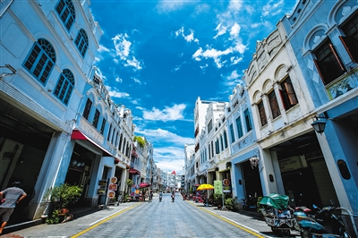 近日开街的海口市观澜湖度假区电影公社南洋街,也吸引了不少游客。南洋街全长300多米,集合了70幢中外建筑风格交相辉映的南洋风情建筑,还原性呈现当铺、洋服铺、武馆、药铺、凉茶铺、饼屋等南洋市井商业风情,同时全天候的演艺让游客感受到立体多元的文化旅游体验。