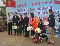 2月22日元宵节当天,为响应省委、省政府关于“我为残疾人献爱心”活动的号召,共青团海南广播电视总台委员会牵手海口旅游景区物业服务有限公司在白沙门公园年轮广场上举办了“情暖元宵,为残疾人献爱心”活动。省残联党组书记符永、省残疾人基金会副理事长蔡甫明、海南广播电视总台团委书记王海东出席本次活动。
