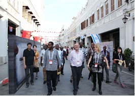 2014年(UCLG)世界理事会、亚洲市长论坛第四次全体大会和首届海口国际友城市长会议参会的世界各国市长们到访海口骑楼参观
