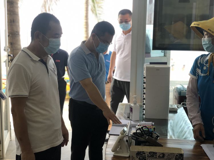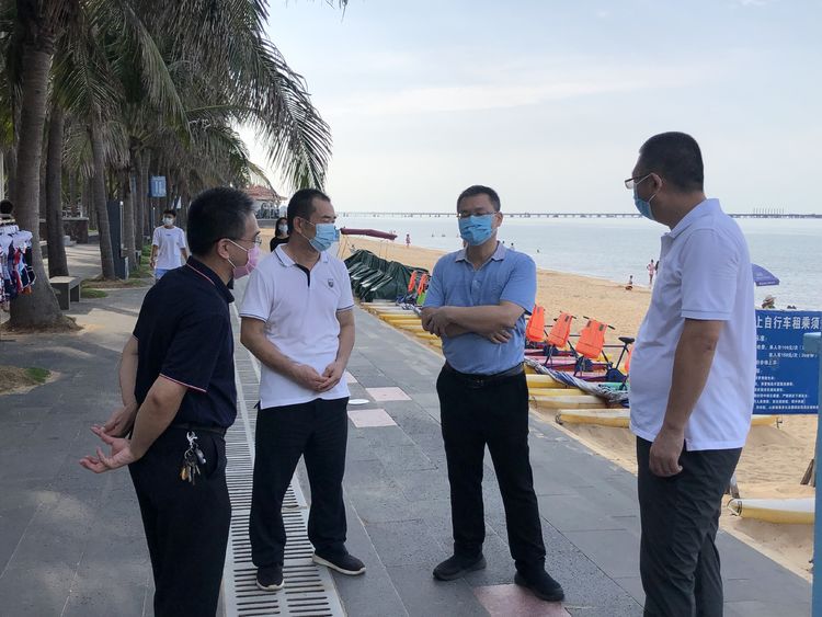 在假日海滩旅游区,陈辉副主任检查全员核酸检测、疫苗接种和应急保障工作等疫情防控措施落实情况,要求海滩公司提高思想认识,始终绷紧疫情防控这根弦,将疫情防控各项工作措施抓严抓实抓细,减少各类非必要的聚集性活动,持续落实实名登记、测温扫码、佩戴口罩、通风消毒、“一米线”等常态化防控措施,加强疫苗接种、核酸检测宣传引导,充分利用广播或宣传标语等做好战“疫”宣传,健全和完善防范预案,提高应急处置能力。