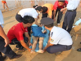 10月7日下午,一名女士在假日海滩游泳时不慎溺水,浴场当班救生员听见呼救声后迅速跳入海中将溺水游客营救上岸,一名来假日海滩游玩的医生见状立即施以援手,与救生员一起为溺水者进行了紧急施救,经过排水、清除口腔异物、人工呼吸、心肺复苏等系列急救处理,溺水游客逐渐从昏迷中苏醒,在120急救车赶到前,为溺水游客争取到了有效抢救时间。事后,溺水者家属对假日海滩公司表示了感谢。2013年以来,紧急救助溺水事件已发生多起,假日海滩救生员成功救回了数条宝贵鲜活的生命。下一步假日海滩公司将继续加强救生员技能培训,努力做好水上救生工作,打造一支作风硬、服务优的专业浴场救生员队伍。