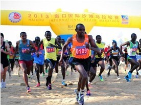 该赛事首创黄昏赛事,选手们在与沙滩亲密接触的同时感受着落日余晖、椰风海韵,互动休闲展示区内百人比基尼方阵、沙滩宝贝动感舞蹈、爵士乐浓情驻唱,将沙滩马拉松变成了一场激情的狂欢盛会,经过激烈角逐,肯尼亚运动员塞莱斯·金姆泰·查波克和罗丹·捷普高瑞·泰涅分获男子专业组和女子专业组冠军。