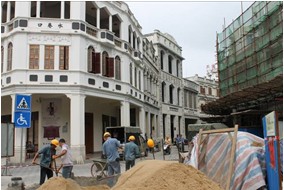 日开工,目前已经完成水巷口街路面铺装施工,进入骑廊加固、外立面裂缝修补及清理阶段,业态调整工作也在同期进行。