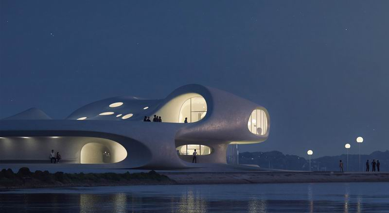由马岩松带领的MAD建筑事务所发布海口"云洞图书馆"设计。一体成型的白色建筑像是多维的时空隧道,连接了城市与海岸、现实与想象。