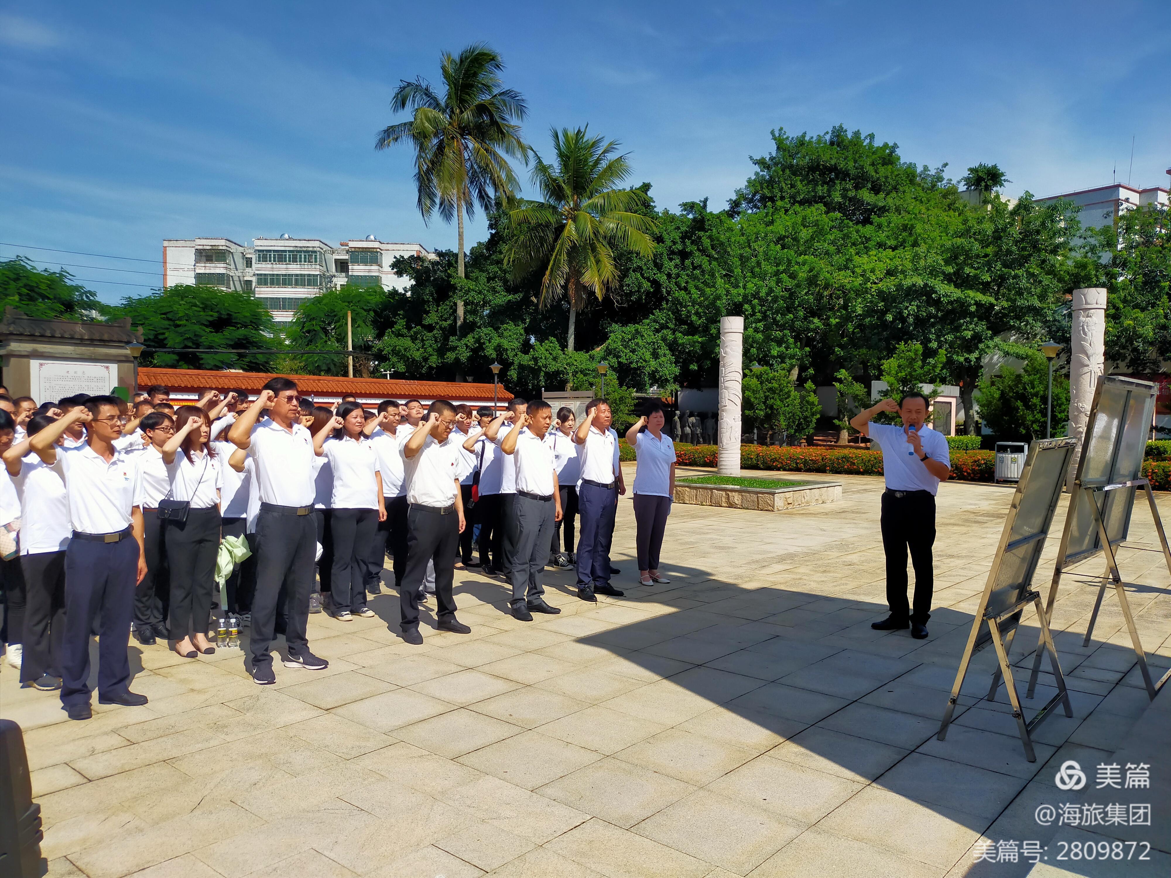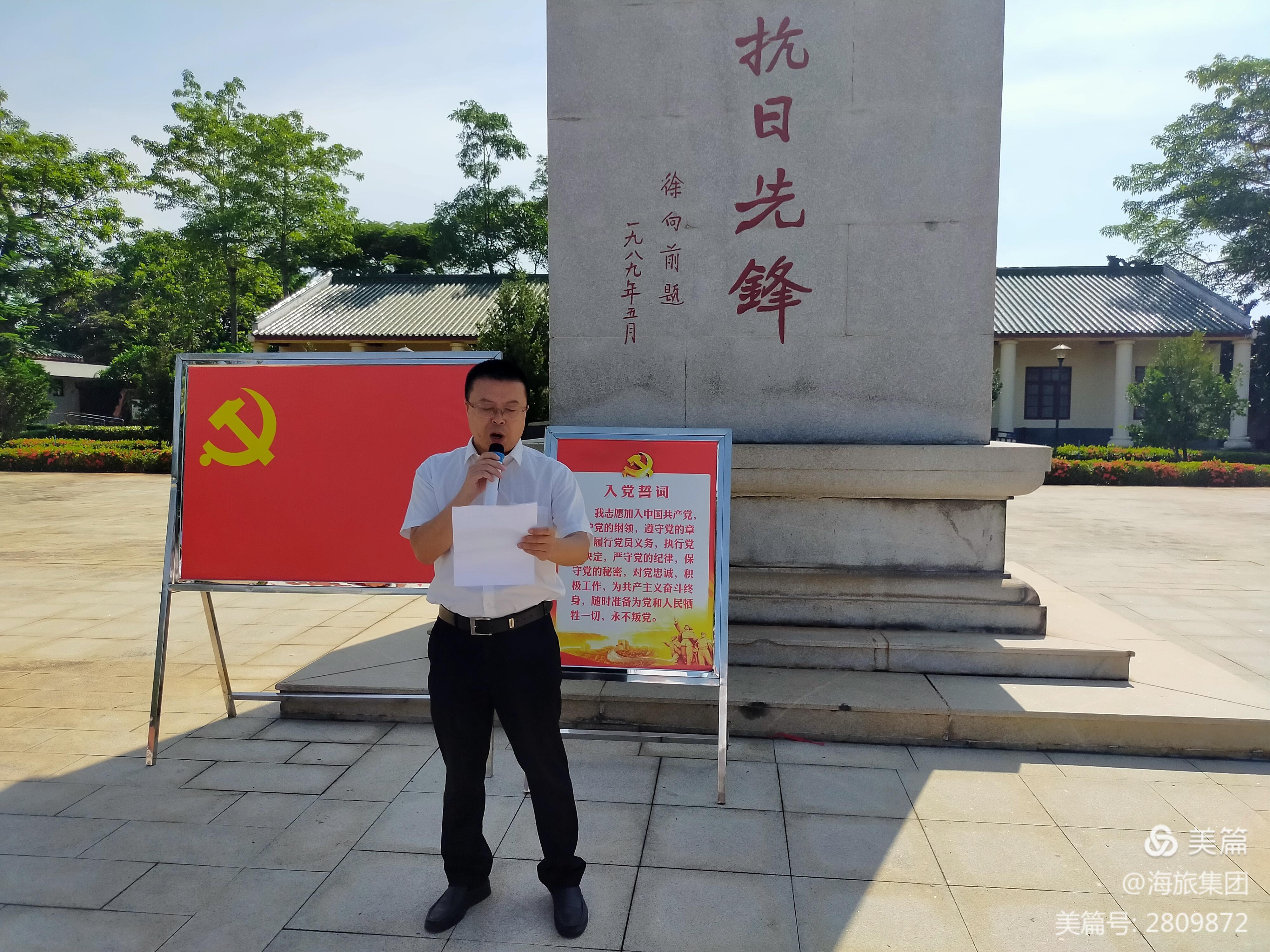 在“琼崖抗日先锋”雕塑前,全体党员整齐列队,由集团党委委员、副董事长秦有军带领,面对党旗郑重举起右手,庄严重温入党誓词,追忆入党初心,牢记使命担当。